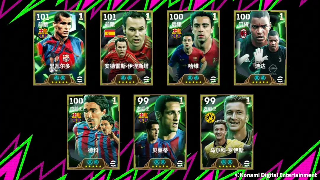 通过【球队功勋 高光 特级经纪人】,你将有机会签下双增能史诗高光里瓦尔多、伊涅斯塔、哈维、迪达、德科、贝莱蒂、罗伊斯!想要补强球队的玩家千万不要错过本次活动!