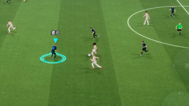 他在边路摆脱防守后背身将球送入禁区