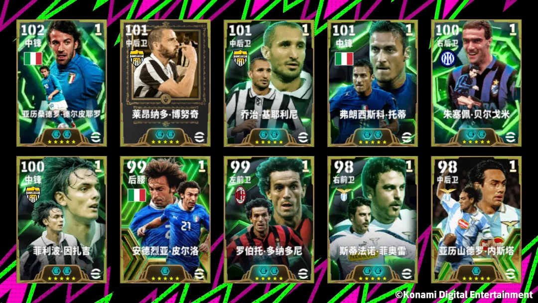 双增能史诗高光贝尔戈米、博努奇、德尔皮耶罗将通过【蓝衣英雄 狂欢赠礼】首次登场!除此之外,你还将有机会获得双增能史诗高光基耶利尼、托蒂、因扎吉、多纳多尼、菲奥雷,增能史诗高光皮尔洛、内斯塔。想要补强球队的玩家们,千万不要错过此次活动!