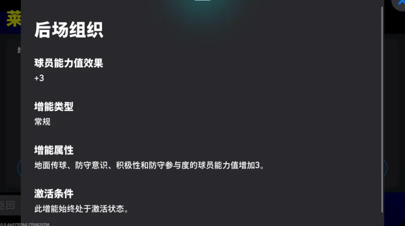 博努奇增能属性为【后场组织 +3】